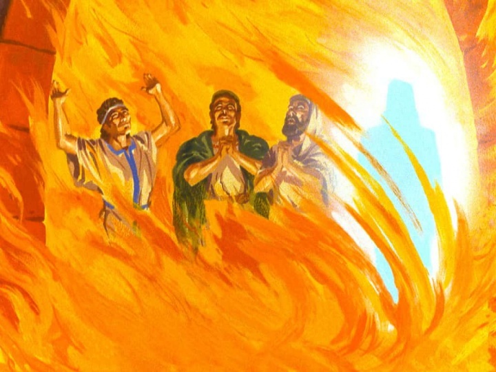 El rey mandó calentar el horno siete veces más de lo habitual y ordenó a algunos de sus soldados más fuertes que ataran a Daniel y a sus amigos y los arrojaran dentro del horno. Pero cuando el rey miró al horno, vio a cuatro hombres andando libremente en el fuego, sin sufrir daño alguno, y el cuarto hombre parecía un «hijo de los dioses».